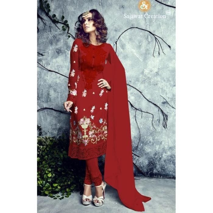 Salwar Kameez Sari Sajawat Rouge Churidar Robe Tenue Indienne Rouge Achat Vente Robe De Ceremonie Soldes Sur Cdiscount Des Le Janvier Cdiscount