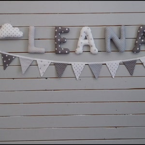 Guirlande Prenom 5 Lettres En Tissu Et Feutrine Decoration Murale Pour Chambre D Enfants Lettres Tissus Prenom Guirlande Personnalisee Par Leptitbonheur