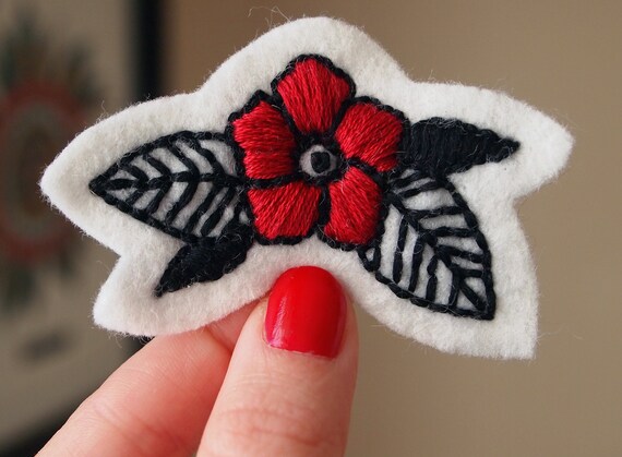 Traditional Flower Tattoo Embroidered Patch Etsy