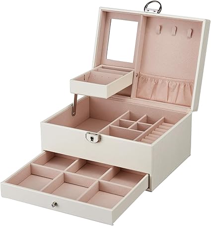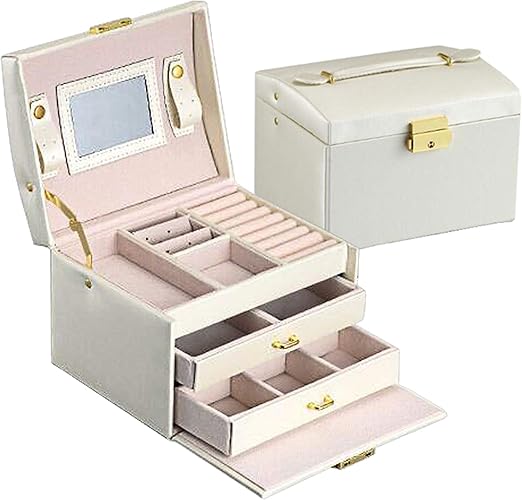 Boite A Bijoux Coffret Bijoux Femme Presentoirs 2 Etages Coffre A Bijoux Verrouillable Avec Miroir Boite De Rangement Bijoux Blanc Achat Vente Boite A Bijoux Soldes Sur Cdiscount Des Le Janvier Cdiscount
