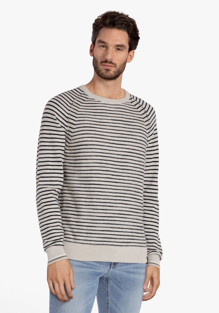 Pull Raye Beige Et Bleu Marine A Col Rond E5 Mode
