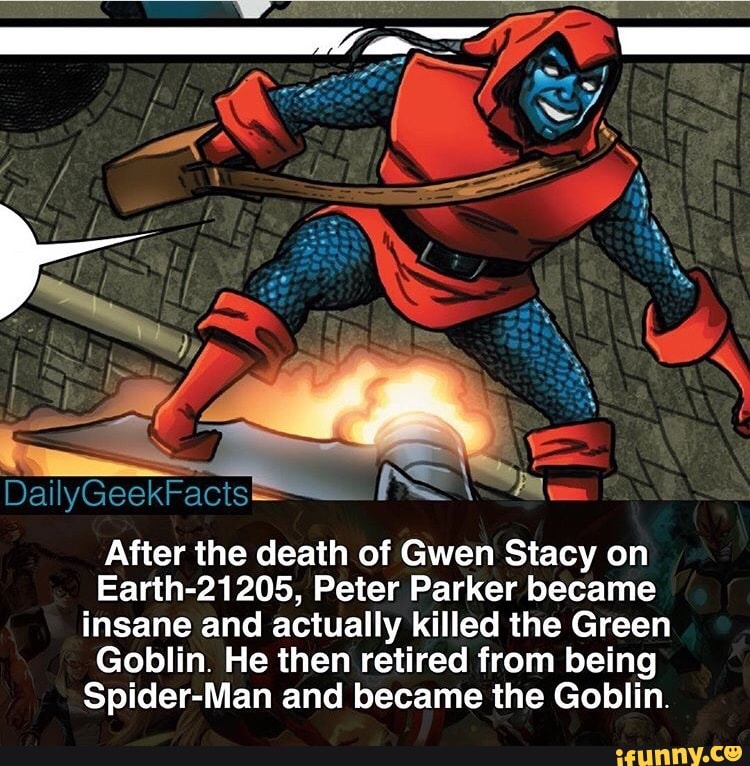 After The Death Of Gwen Stacy On Earth 215 Peter Parker Became Insane And Actually Killed The Green Goblin He Then Retired From Being Spider Man And Became The Goblin Ifunny