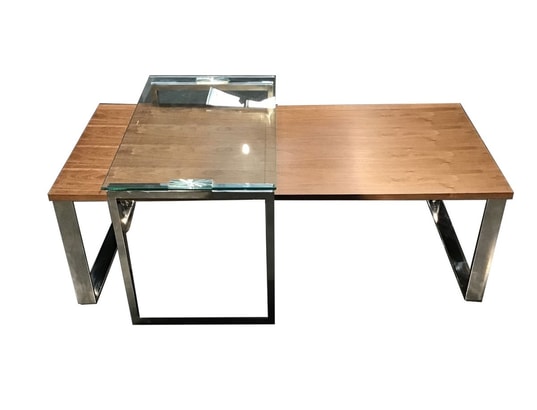 Table Basse Couleur Teck Avec 2 Plateaux En Verre Contemporaine Kasalinea