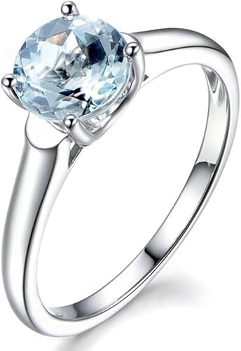 Ocean Bleu Naturel Aigue Marine Pierre Precieuse Or Blanc 585 1000 14 Carats Fiancailles De Promesse La Mode Bague Pour Femmes Amazon Fr Bijoux