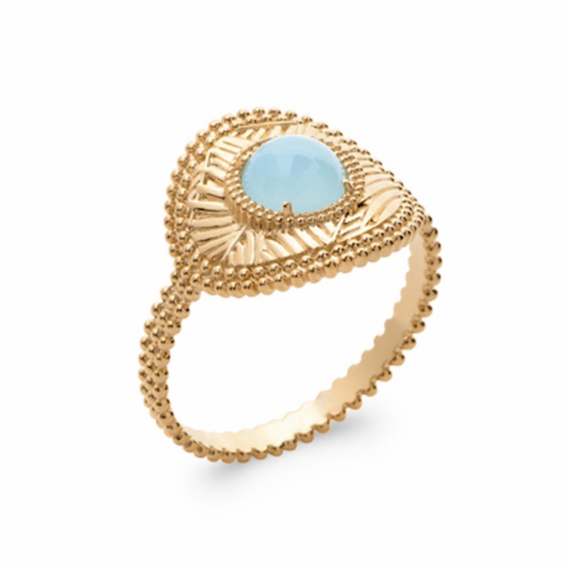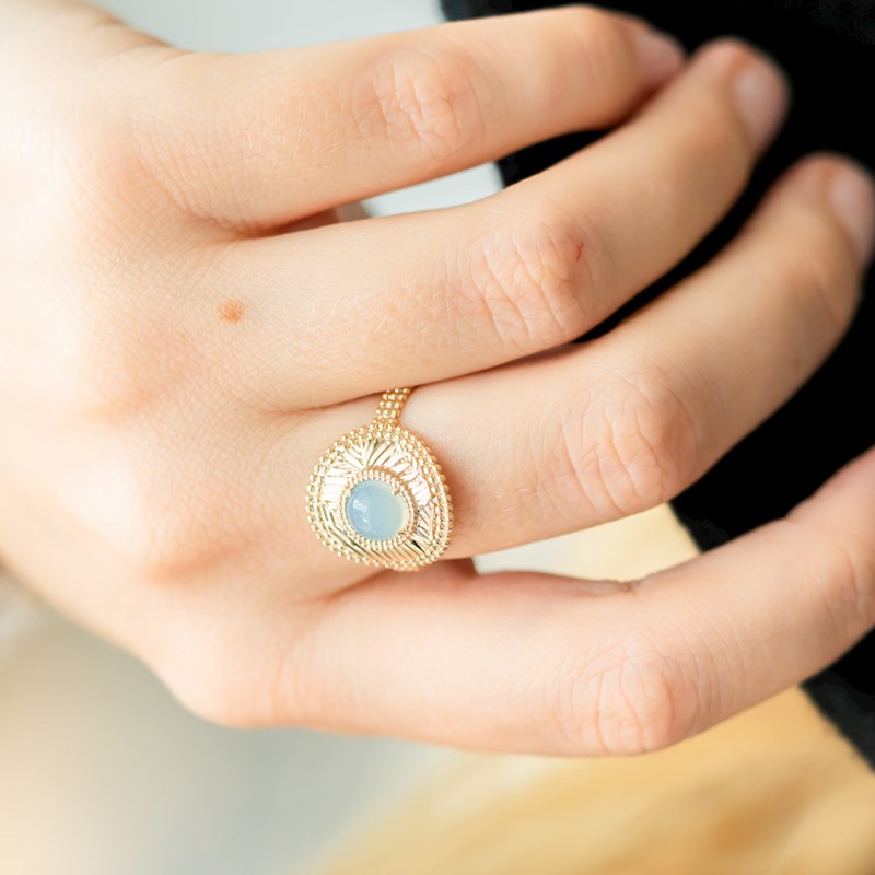 Bague Plaque Or Pierre Precieuse Bleue Agate Cabochon Femme Bague Maty