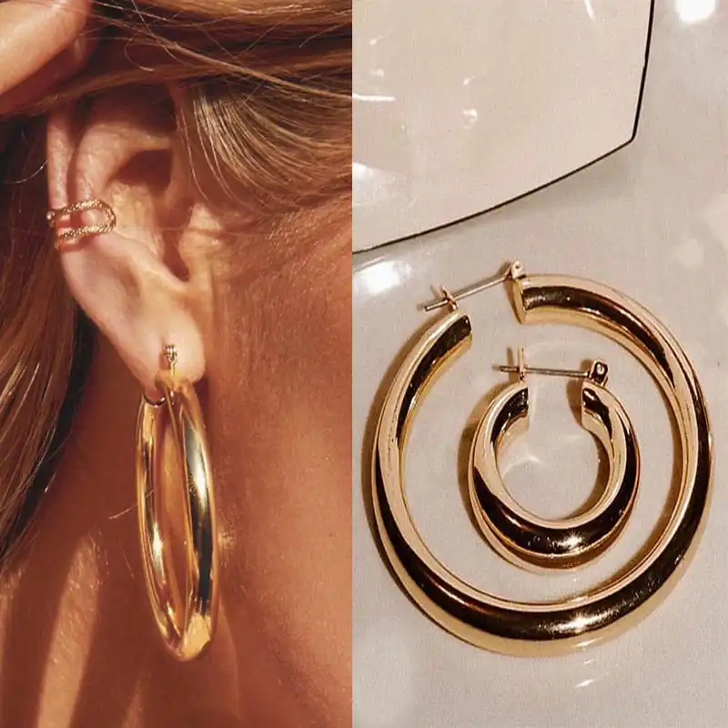 50 Mm Gros Or Cerceaux Boucles D Oreilles Minimaliste Tube Epais Rond Cercle Anneaux Boucles D Oreilles Pour Les Femmes En Alliage De Zinc A La Mode Hiphop Rock Aliexpress
