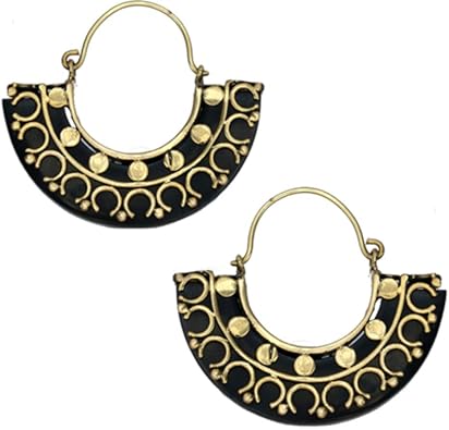 Chicnet Boucles D Oreilles Pendantes En Laiton Et En Bois D Arang Noir 35 Mm De Haut Vintage Tribal Demi Anneau Epais Decore De Cercles Amazon Fr Bijoux