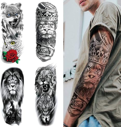 Tatouages Temporaires Pour Homme Femme Filles Feelairy Grand Manchette Tatouages Tattoo Etanche Bras Complet Autocollant Body Tattoo Sticker Tatouages Ephemeres Tigre Lion Loup 4 Feuilles Amazon Fr Beaute Et Parfum