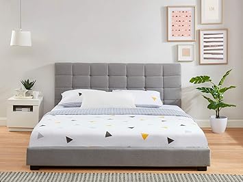 Sommier A Lattes 160x0cm Homifab Lit Adulte Avec Tete De Lit Capitonnee En Tissu Gris Clair Collection Milo Cuisine Maison Ameublement Et Decoration