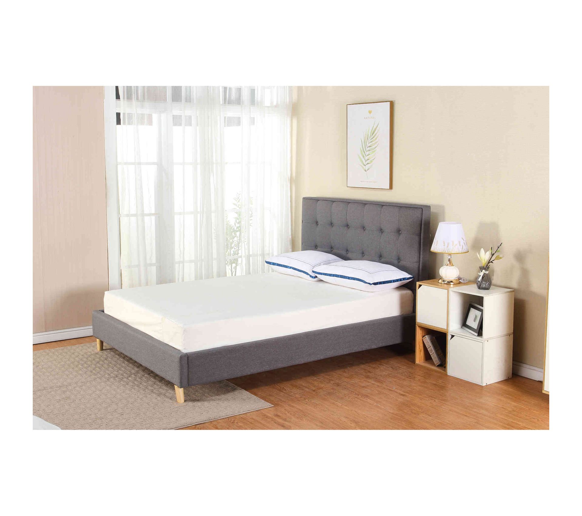Lit Tissu Capitonne Avec Sommier Et Tete De Lit Gris Clair 140x190 Lt9002