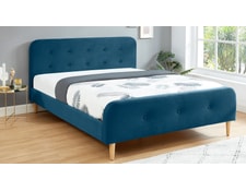 Lit Bleu 160 En Tissu Avec Tete De Lit Capitonnee Nala 3 Suisses