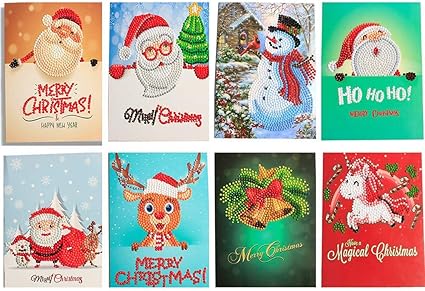 Lot De 8 Cartes De Noel A Faire Soi Meme Kit De Peinture Diamant 5d Cartes