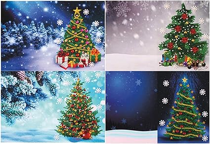 Lot De 4 Cartes De Noel 5d A Faire Soi Meme Peinture Diamant Ronde Cartes De