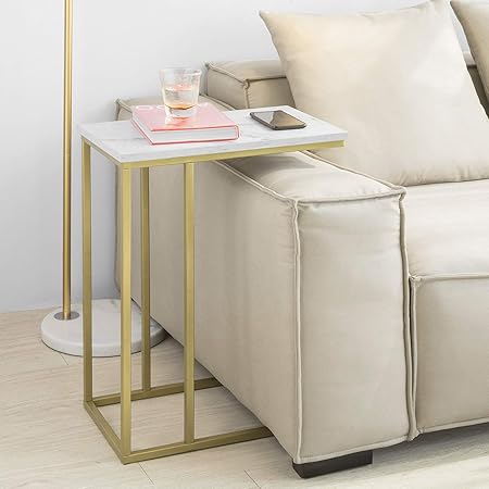 Idimex Bout De Canape Carlota En Metal Dore Et Plateau Rectangulaire En Mdf Decor Marbre Blanc Table D Appoint Table A Cafe Table Basse De Salon Design Chic Et Elegant Amazon Fr Cuisine