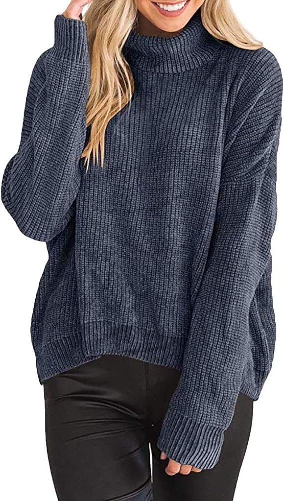 Pull Hiver Femme Col Roule Bleu Tricot Epais Modebuy Com