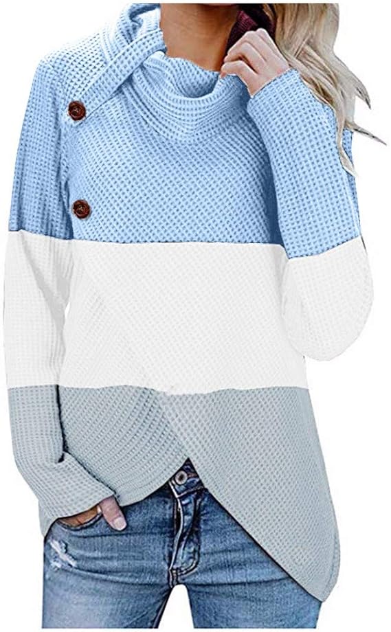 Longra Pull Femmes Color Block Bouton De Cou Gros Tricot Ourlet Irreguliere Tops Automne Et Hiver Col Montant Bouton Couture Multicolore Sauvage Manches Longues Top Couvercle Amazon Fr Vetements Et Accessoires