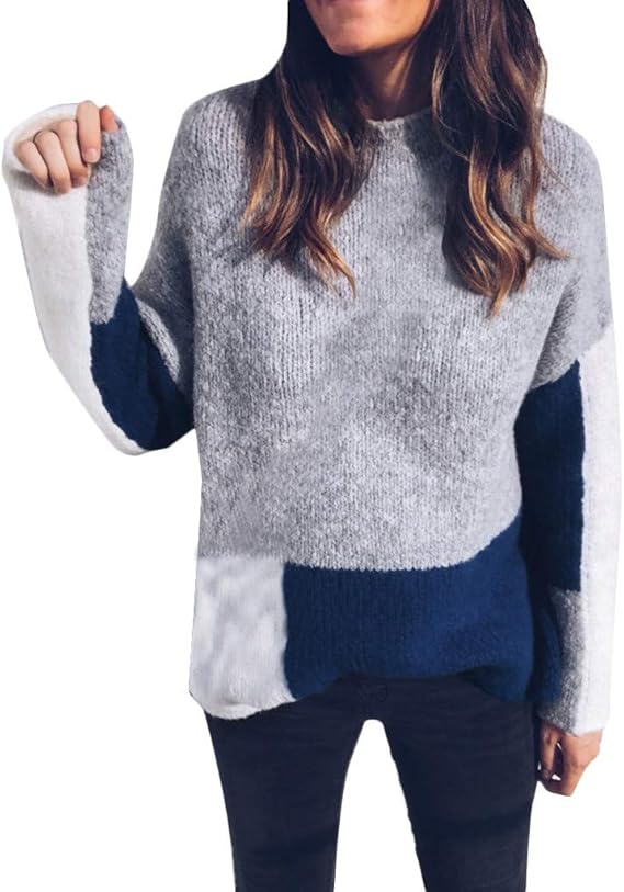 Vjgoal Femme Pull Femme Longue Hiver Multicolore D Epissage Pullover Gris Chaud Gros Pull Col Rond Pas Cher A La Mode Chaud Sweater Manches Longues Sweet Hauts Tops S Xl Amazon Fr Vetements Et Accessoires