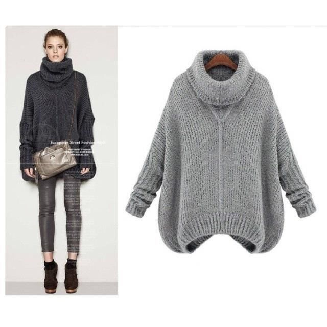 Grey Plain High Neck Long Sleeve Pullover Sweater Ladies Turtleneck Sweaters Plain Sweaters Sweaters For Women
