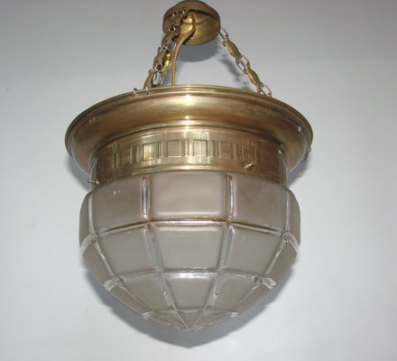 Lampe A Suspension Ancienne En Verre Et En Laiton En Vente Sur Pamono