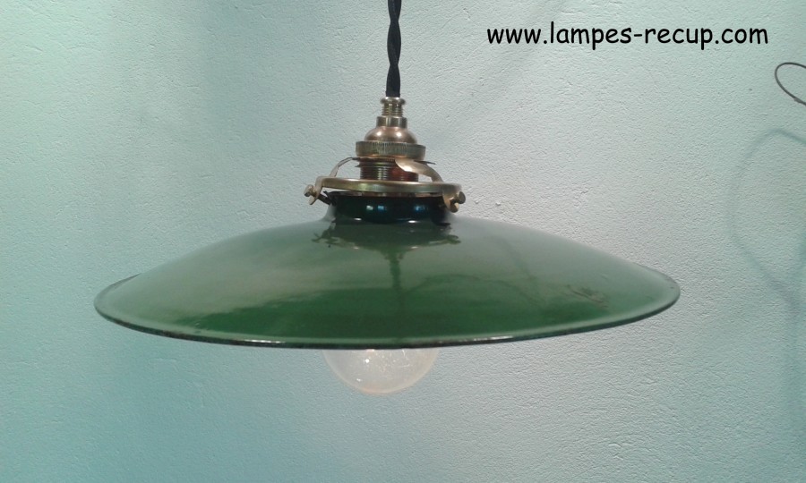 Ancienne Lampe Suspension En Tole Emaillee Verte Gamelle Vintage