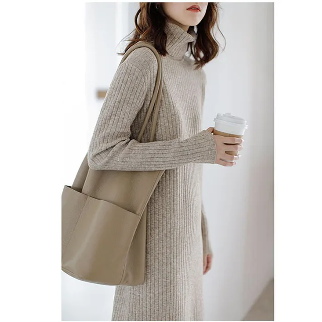 L Automne Et L Hiver Femmes Lache Couleur Chandail Des Sorts A Manches Longues Robe Pull