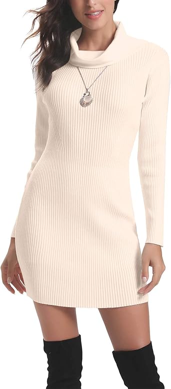 Aleumdr Robe Pull Femme Elegant Robe Pull Tricote Col Haut Robe Cotele Robe Chaude Pour L Automne Hiver Amazon Fr Vetements Et Accessoires