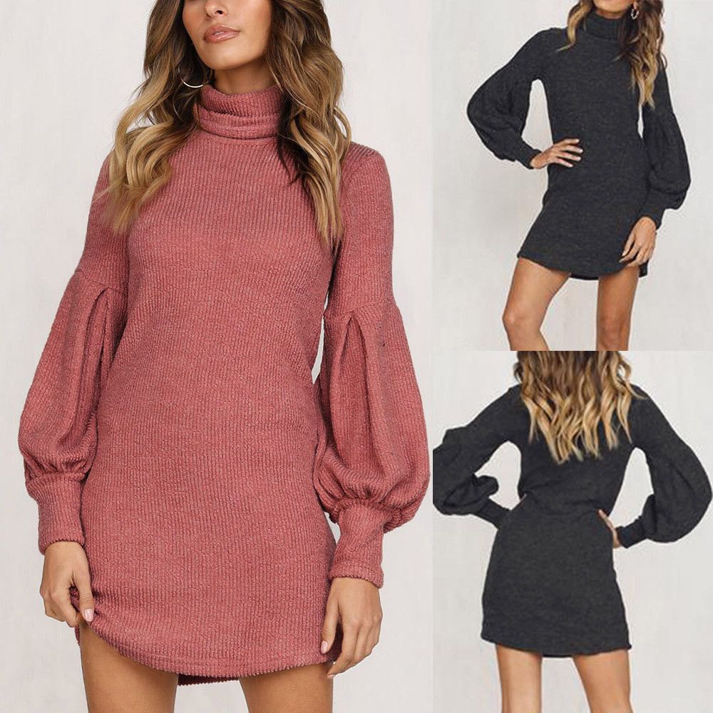 Femme Hiver Tricot Col Roule Pull Moulant Pull Robe Pull Manches Longues Ebay