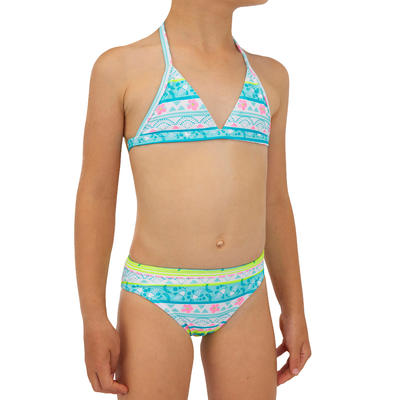 Culotte Et Haut De Maillot De Bain Surf Fillette Triangle Turquoise Tina 100
