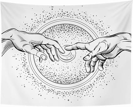 Tapisseries Tenture Murale Style Michel Ange Adams Tactile Espoir Mains Creation Est Embleme Signe Moderne Tatouages Support Doigt Tapisserie Couverture Murale Decor A La Maison Salon Chambre Dortoi Amazon Fr Cuisine Maison