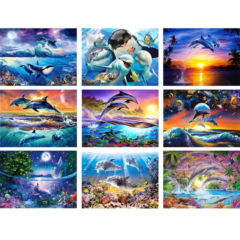 Kit De Broderie Diamant 5d Avec Motifs Animaux Bricolage Kit Point De Croix Motif Dauphins Amoureux Decoration De Mariage En Mosaique Cadeaux Aliexpress