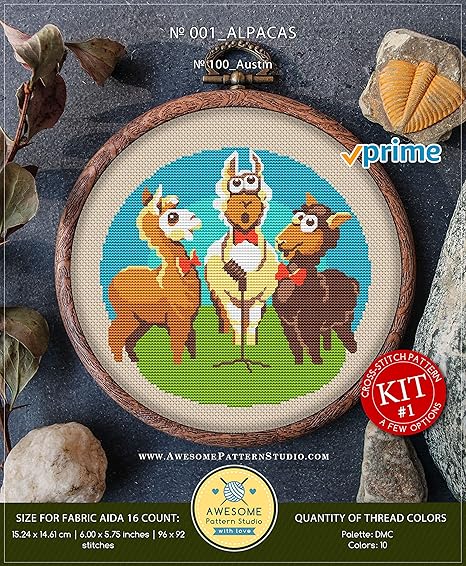 Alpagas K001 Au Point De Croix Kit De Broderie Droles D Animaux Au Point De