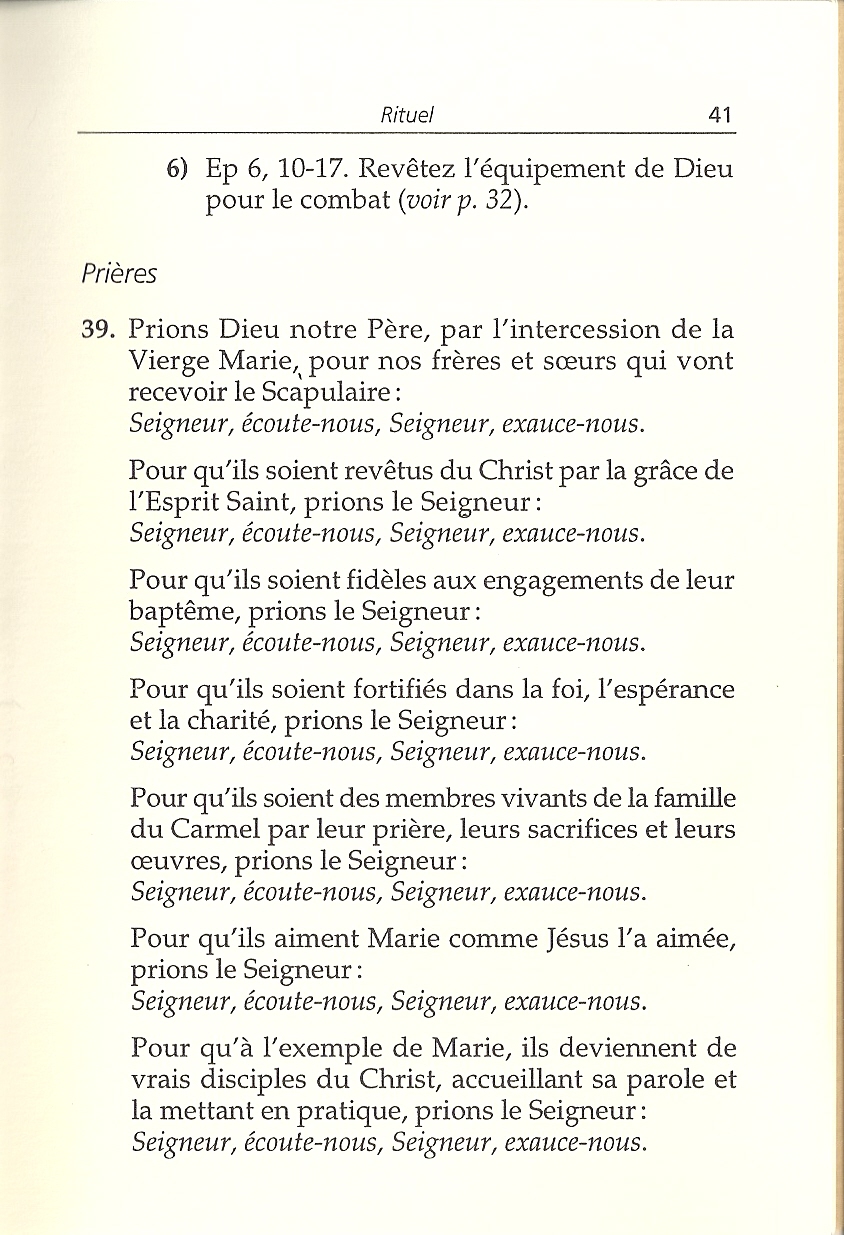 Rituel D Imposition Du Scapulaire Brun Du Mont Carmel En Francais Approuve Par La S C Pour Le Culte Divin En 1996