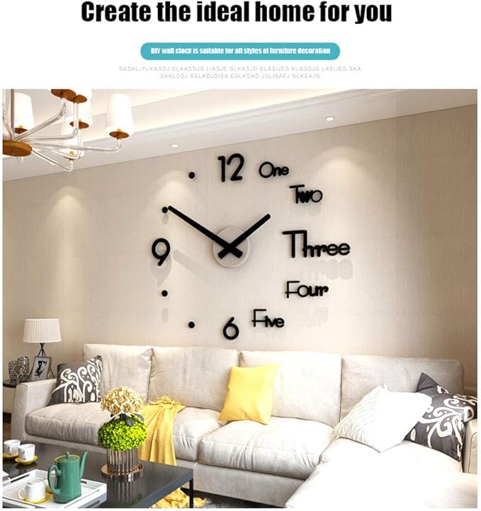 Hhnn Bricolage Horloge Murale Horloge Murale Salon Maison Horloge De Mode Decoration Minimaliste Moderne Personnalite Creative Nordique Installation Simple Personnalite 3d Numero Stereo Noir Cuisine Maison Pendules Murales