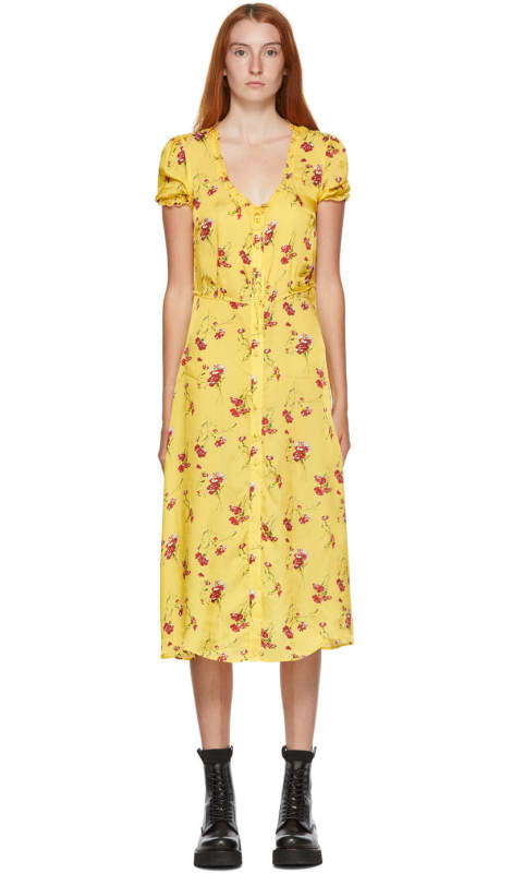 Robe Midi Fleurie Noire Et Jaune Robes Fleuries Robes Mi Longues Fleuries Flower Corner