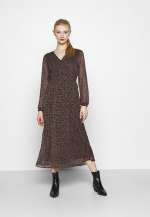 Robe Midi Portefeuille Imprime Fleuri Rouge Suncoo