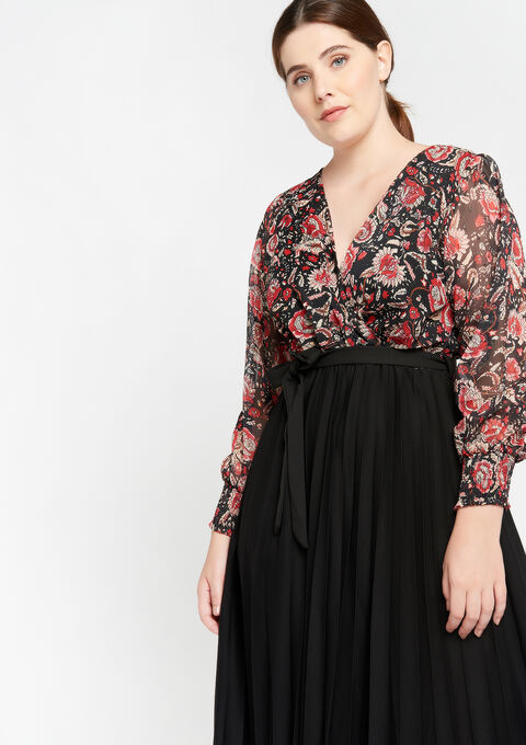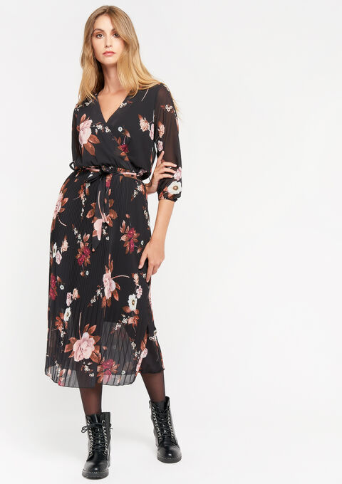 Robe Midi Fleurie Avec Plisse Lolaliza