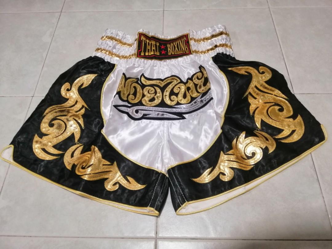 Authentic Muay Thai Shorts Size L Black White Gold Men S Fashion Clothes Bottoms On Carousell