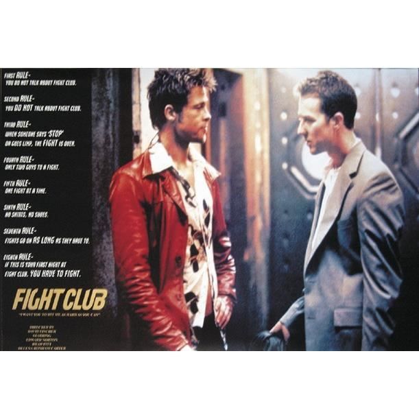 Paiement sécurisé Suivi de colis Retour sous 100 jours Qualité supérieure Commandez maintenant une affiche ou tableau de Règles du Fight Club (anglais) !. Toutes les semaines, ils se rendent au «Fight Club», club de boxe à mains nues clandestin, dont les règles sont édictées par son charismatique leader, Tyler Durden (Brad Pitt), avant chacune. 3ème rêgle de Fight Club, quelqu'un crie STOP, quelqu'un s'écroule ou n'en peut plus, le combat est terminé!.