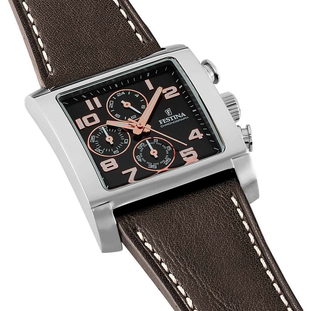 Montre Festina Chrono F424 4 Montre Acier Cadran Noir Bracelet Cuir Brun Homme Sur Bijourama Montre Homme Pas Cher En Ligne