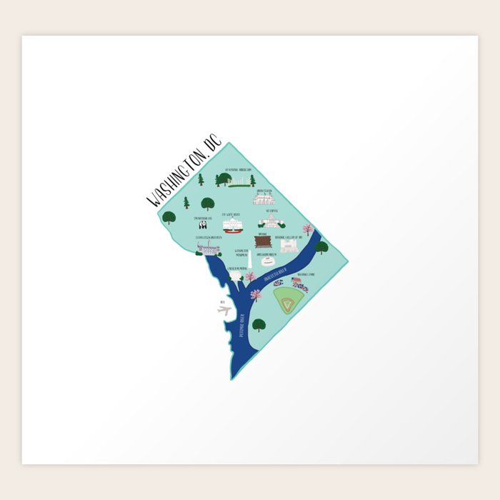 Washington Dc Illustrated Map Art Print By Twelvepastseven Society6