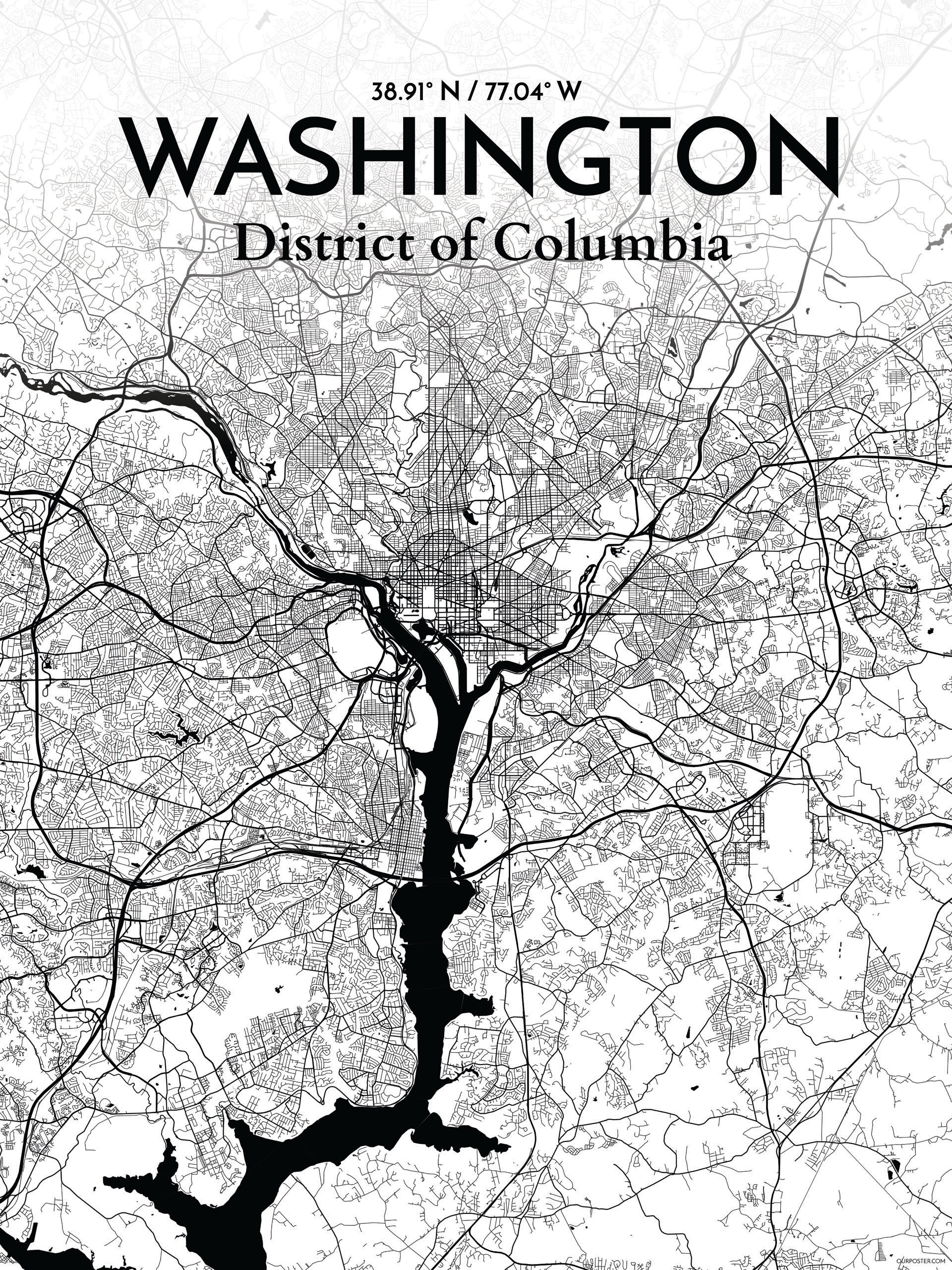 Washington Dc City Map Framed Prints Wall Art Posters