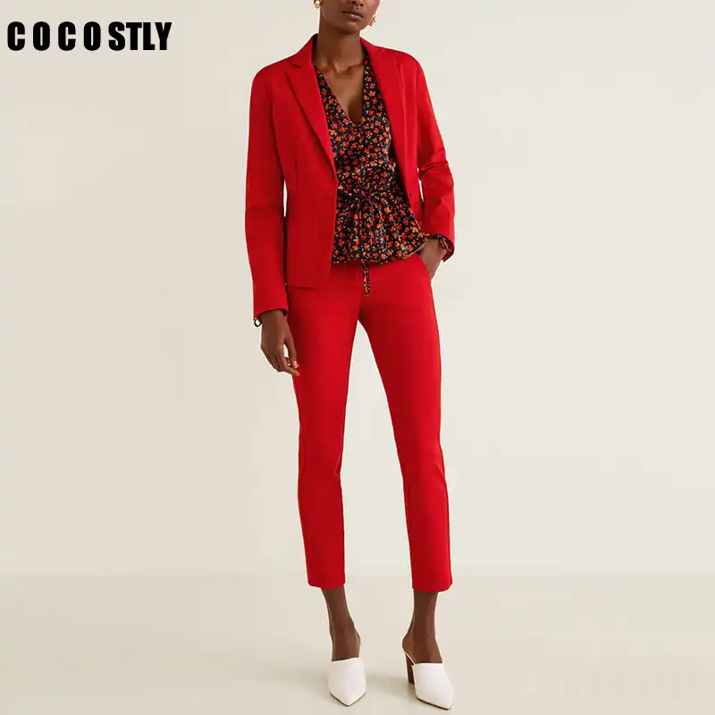 Bureau Dame Pantalon Costume Femme Simple Boutonnage A Manches Longues Veste Courte Pantalon Deux Pieces Ensemble Pantalon Rouge Costume Femme Aliexpress