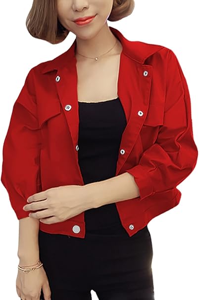 Sourcingmap Femme Col Rabattu Manches Raglan Rabats Modele Veste Courte Femme Rouge Xs 32 Amazon Fr Cuisine Maison