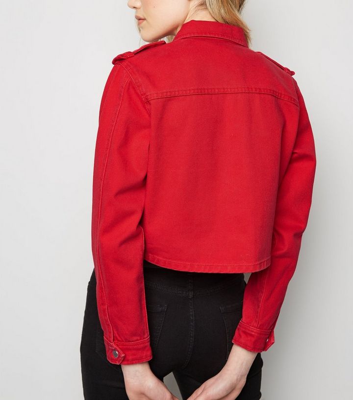 Veste En Jean Rouge Courte Coupe Droite New Look