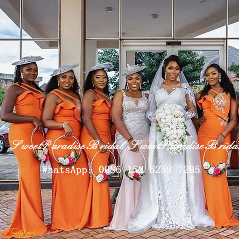 Robe De Demoiselle D Honneur Orange Asymetrique Epaule Denudee Avec Appliques Blanches Longue Robe Sirene Pour Les Ceremonies De Mariage Femmes Africaines Aliexpress