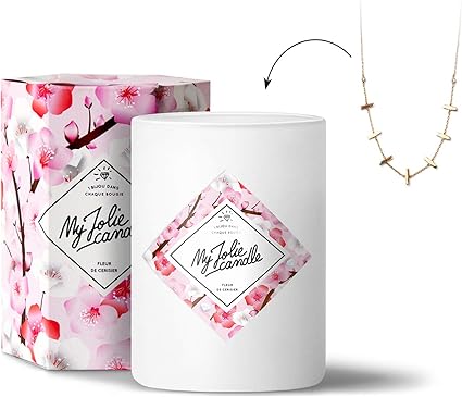 My Jolie Candle Bougie Parfumee Avec Bijou Suprise A L Interieur Bijou Collier En Plaque Or Parfum Fleur De Cerisier Cire Naturelle Vegetale 330g 70h Combustion Amazon Fr Cuisine Maison