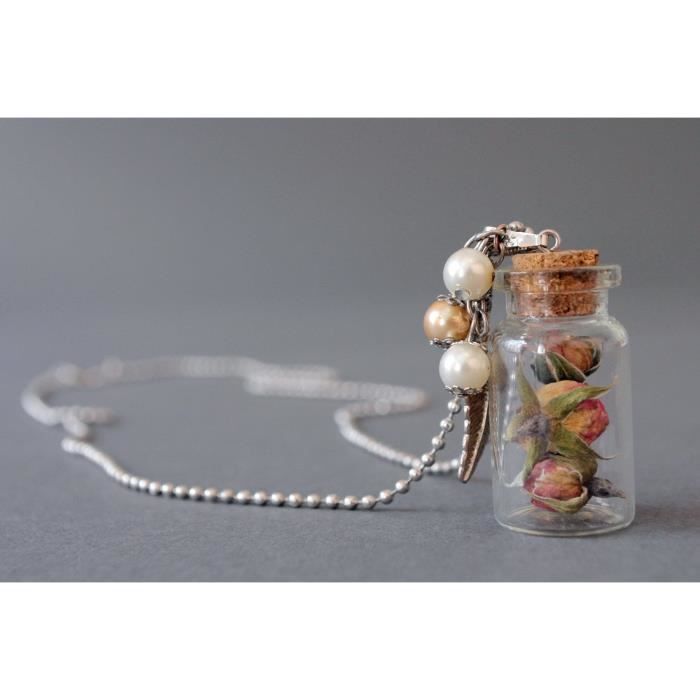 Collier Pendentif En Verre Pierre Avec Rose A L Interieur Achat Vente Sautoir Et Collier Collier Pendentif En Verre Gris
