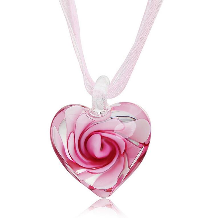 Collier Pendentif En Verre De Murano Avec Des Fleurs A L Interieur Pour Les Femmes Accessoires De Bijoux Aliexpress