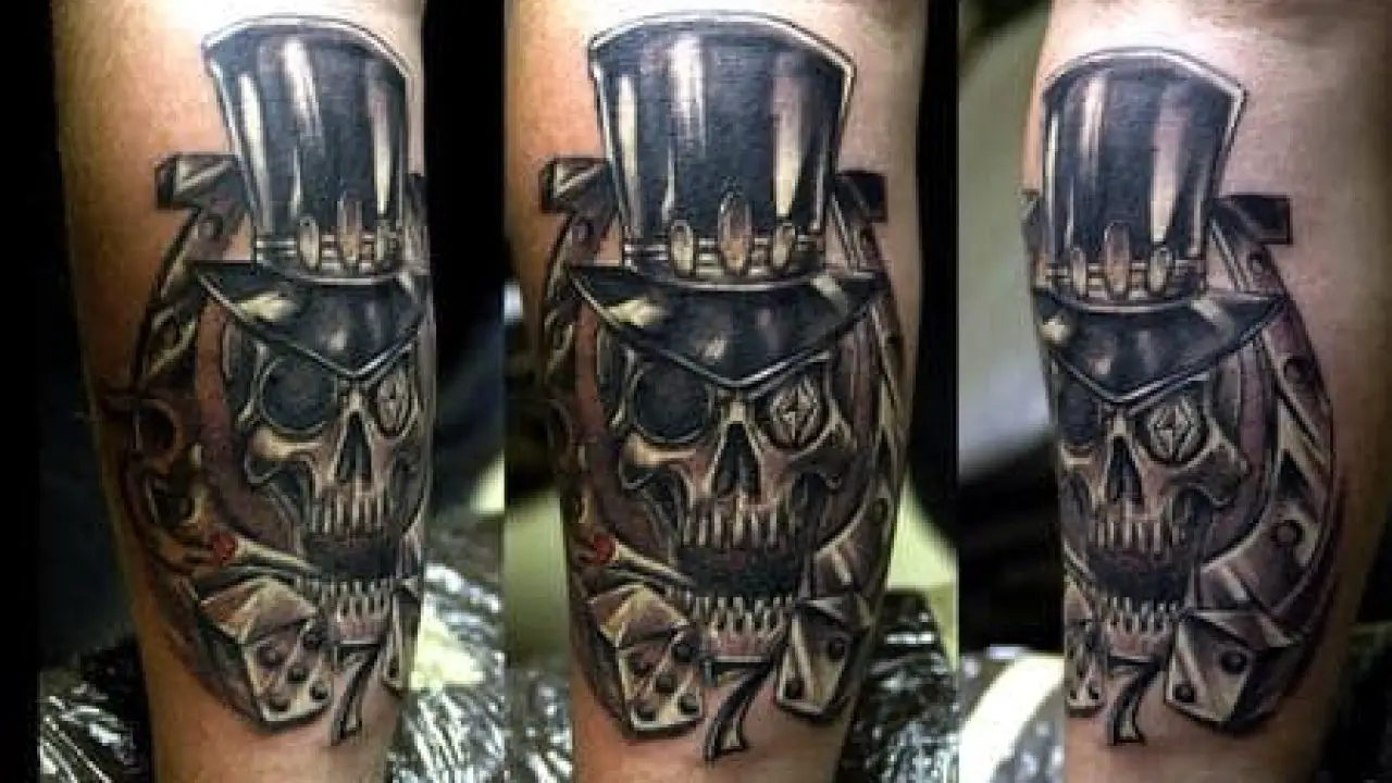 Old School Skull With Top Hat And Dice Mens Traditional Arm Tattoos Skull Tattoo Design Skull Tattoo Tattoos For Guys