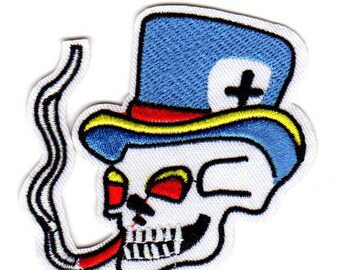 Tattoo Patch Skull With Tophat Old School Traditional Retro Rockabilly Ebay
